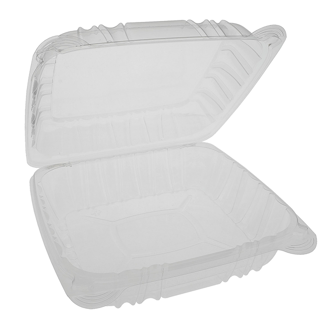 These SmartLock® hinged Lid, plastic carry-out containers hold a range of products from salads to sandwiches. Easily stackable, these clamshell containers make food assembly quick and delivery trouble-free.