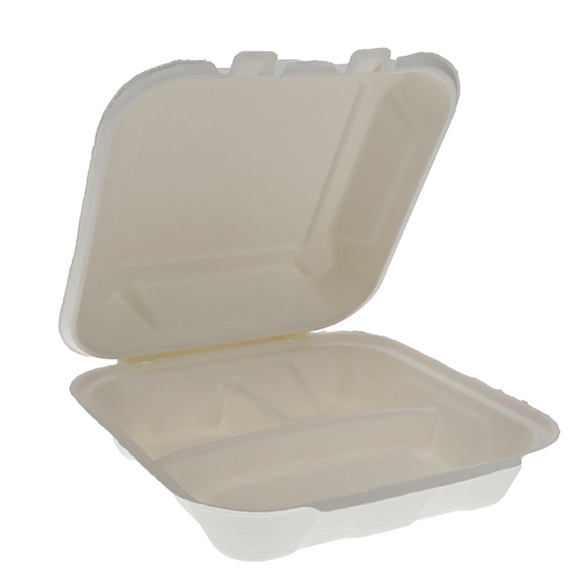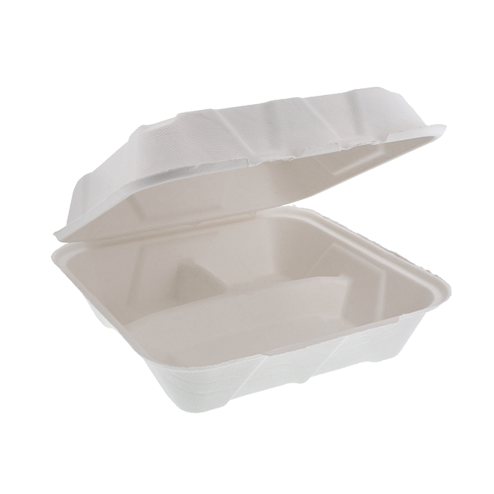 Earth Plus 8 x 8" PFAS-Free Compostable 3-Compartment Fiber Blend Hinged Container